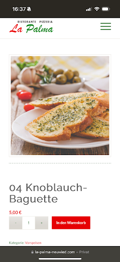 Read moreNeuwied - Seit 1985 gibt es das Ristorante La Palma in der oberen Mittelstraße. Am 01. November 2007 übernahm Stefano es von Aldo und führte es erfolgreich weiter. Das alte Gebäude war ziemlich in die Jahre gekommen und eine Renovierung hätte nicht die gewünschte (auch energetische) Optimierung gebracht. Von daher entschied sich Stefano 2018 zu einem radikalen Schritt und ließ das Haus abreißen. Durch Corona etwas verzögert, ist die beliebte Pizzeria wieder geöffnet und freut sich darauf, ihre Gäste mit typisch italienischen Köstlichkeiten zu bewirten. Man kann es nur weiter empfehlen.