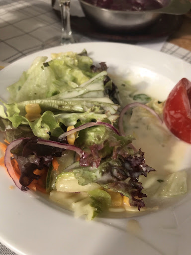 Das Essen kam nach ca 30 Minuten, unter anderem hatten wir 2 Jägerschnitzel bestellt. Laut Karte mit Pommes und Salat. Es wurde eine kleine gemeinsame Pommes gebracht und kein Salat. Auf das ansprechen bei der Bedienung sagte sie, sie könne uns noch Pommes bringen wenn wir unbedingt mehr wollen und fragt nach ob Salat dabei wäre. 10 Minuten später kam die Beilage Pommes und auch 2 Salate.