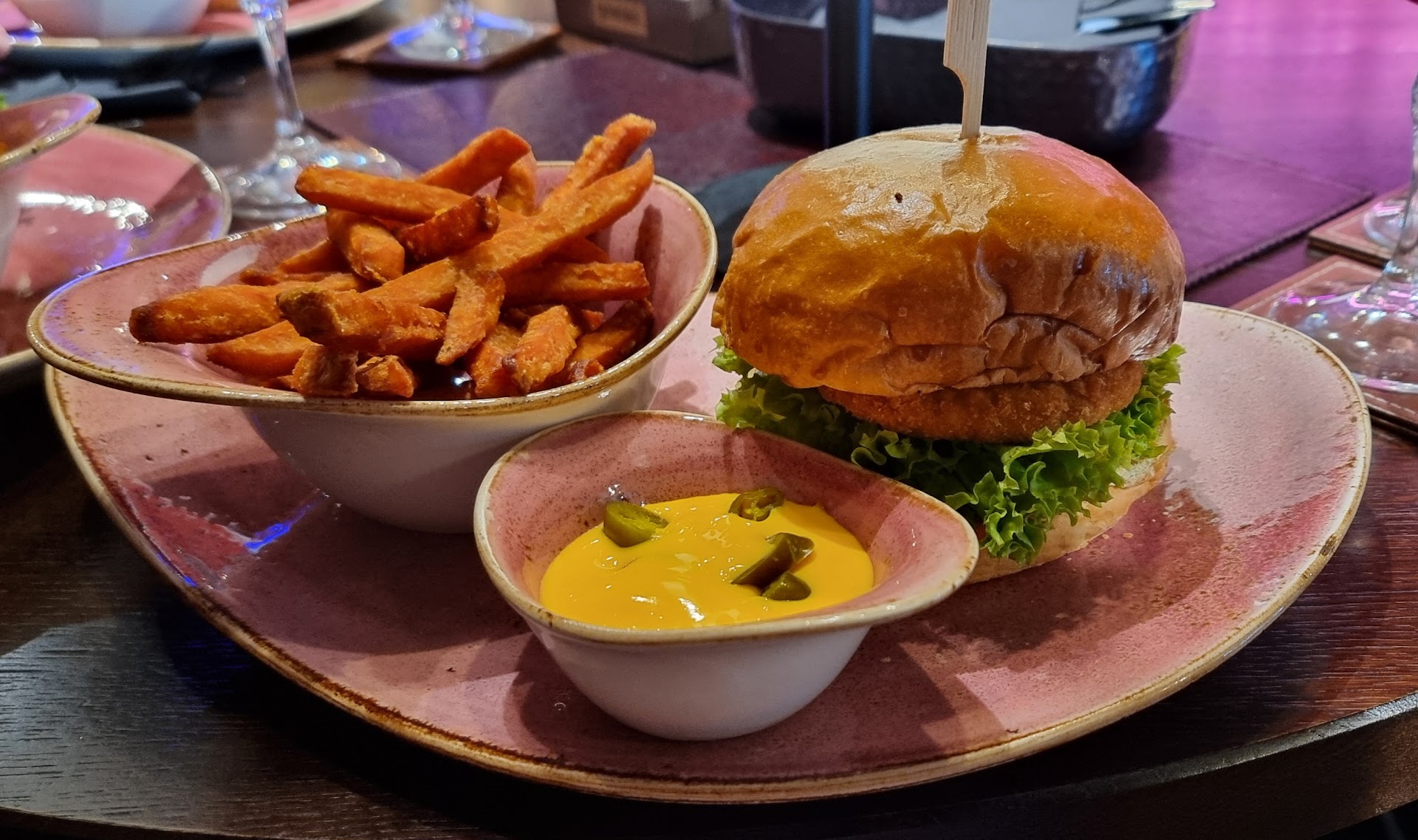 Thema Essen und Service war eine große Katastrophe... am Anfang ging es recht zügig, wir kamen zu ubserem tisch, karten kamen, Getränke kamen, essen wurde aufgenommen. Aber ab dann war der Wurm drinnen. Nach 20 minuten kam unsere Vorspeise, alles in ordnung ab dann ging die Warterei los.. Wir haben insgesamt fast 2 Stunden auf unser Essen warten müssen. Zwischenzeitlich kam niemand freiwillig einmal fragen ob wir noch etwas möchten oder hat die vorspeisenteller abgeräumt. Auf Rückfrage wann unser Essen kommt hieß es sie frage nach, aber da kam keine Antwort. Nach weiteren 30 minuten und mehrfachen nachfragen unsererseits kam eine andere Bedienung und fragte ob alles in Ordnung sei, dann haben wir dies verneint, dass wir seit mehr als 1,5 Stunden auf unser Essen warten. Alle um uns rum sowohl Vorspeisen als auch Hauptgänge erhalten haben obwohl sie nach uns kamen. Es wurde sich bis zu diesem Zeitpunkt nicht einmal entschuldigt oder irgendwie versucht es wieder gut zu machen, dass wir scheinbar vergessen wurden. Dann weitere 20 Minuten kam die Bedienung und meinte das Essen wäre in Zubereitung und wäre in 3 Minuten da - Fehlanzeige es hat weitere 20 Minuten gedauert bis unser Essen kam. Das Fleisch war viel zu trocken -Tod gebraten und das Brot war auch sehr fest und trocken. Sonst Soßen waren lecker, pommes waren gut durch und kross. Finde es auch toll, dass man Alternativen zu fertigen Pommes wählen könnte.