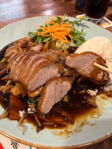 Nun das Essen. Die erdnusssoße war halb ausgelaufen alles war vollgematscht in der Tüte, außerdem war das im besten Fall Wasser, welches mal über ne Erdnuss geflossen ist , das hatte mit Soße nichts zu tun. Das Tofu war bitter ohne Ende, ungenießbar. Das Tofu komplett zerquetscht und der Lachs welcher verarbeitet war, sicherlich nicht frisch ... die Nudeln an sich haben nach nichts geschmeckt ! Eine einzige Katastrophe. Wir haben das Essen entsorgt. 30€ inkl Trinkgeld für den Müll . Absolut nicht...