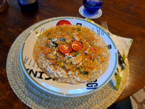 Beautiful Ambiance: This is definitely the highlight! The restaurant boasts a lovely atmosphere, both inside and out. Whether you prefer a cozy indoor setting or a chance to dine under the beautiful weather, they have you covered. The calm and inviting atmosphere makes it a great place to unwind and savor your meal. Traditional Delights: The menu features classic dishes, offering a taste of something familiar and comforting. Extensive Menu: There's a good variety of options to choose from, ensuring you'll find something to suit your taste. Tasty Food: Deliciousness