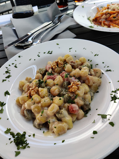 Katastrophe! Wir waren zu viert essen und haben über 1 Std. aufs Essen gewartet und in der Wartezeit war es schwer, mehr als nur das erste Getränk zu bekommen. Es war auch schon einiges aus, zB Tomaten Bruschetta, Tintenfisch und Schwertfisch. Es kamen schließlich 3 Essen (davon eins nicht überbacken , wie bestellt) , das fehlende Essen wurde moniert. Der Junge Mann, der uns bediente meinte, es komme gleich. Nach weiteren 15 Minuten und insgesamt 3. Abmahnung wollte er sich drum kümmern, aber das ginge nur drinnen. Als er wieder kam, entschuldigte er sich, er habe vergessen, das Essen aufzuschreiben und revanchiere sich gern mit einem gratis Espresso, aber ein Ersatzessen könne es nicht mehr geben, die Küche sei beschäftigt. Auch eine Kleinigkeit oder Suppe sei nicht drin. Ging und nahm bei neu eingetroffen Gästen noch Bestellungen auf, war aber auf weitere Ansprache nicht zu einer Neubestellung unsererseits zu bewegen. Diesr Unverfrorenheit hat uns den Abend stimmungsmäßig ziemlich verdorben. Als wir vor ein paar Monaten schon einmal dort waren, haben wir über diesen 'Ober' noch gelacht und haben gedacht, so wie der sich anstellt, während seine Kollegin fast alleine den Laden schmiss, sei der ganz neu in der Gastronomie, aber alles ist offensichtlich noch steigerbar und die junge Dame ist immernoch...
