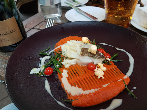 Read moreNach dem was ich von diesem Restaurant gehört hatte, waren meine Erwartungen scheinbar zu hoch. Ich war etwas enttäuscht. Das Lokal an sich ist sehr schön und urig, wirklich hübsch mit Fachwerk und den versetzen Ebenen. Meine rote Beete Suppe war sehr lecker aber für 8,50 fehlt das I-Tüpfelchen irgendwas nettes fürs Auge ein Topping ein grünes Blättchen, wie auch immer. Weder mein Kartoffelbrei noch der Kartoffelstampf beim Hauptgericht meines Mannes, hatten die richtige Konsistenz, war viel zu breiig. Mein Sauerkraut war durch zu viel Dörrfleisch übersalzen was dem Geschmack der Wildbratwurst entgegen wirkte. Das Rinderfilet meines Mannes war sehr gut. Er wurde allerdings nicht gefragt wie er es gerne gebraten möchte. Von den beiden Espresso die wir bestellten war einer total bitter und viel zu stark, während der zweite total verwässert war. Dies äußerten wir beim Bezahlen, woraufhin die Bedienung meinte ja es scheint mit der Maschine was nicht zu stimmen es leuchtet immer wieder der Störknopf..... Wir durften die "Störung" bezahlen. Nicht die professionelle Art mit sowas umzugehen. Um es auf den Punkt zu bringen, in dieser Preisklasse gibt es wesentlich bessere Lokale, nur Ambiente...
