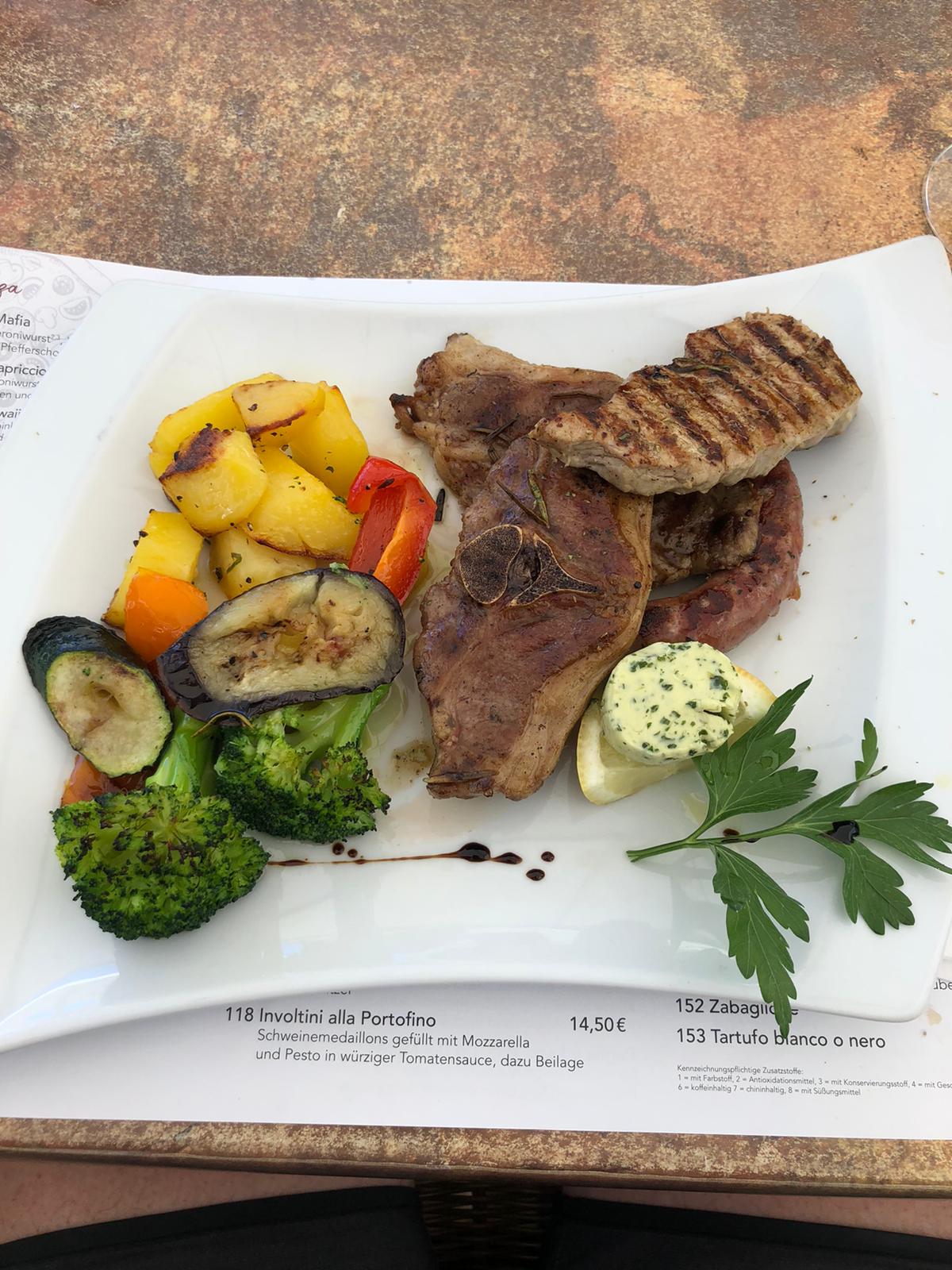 Read moreWir waren am Ostersonntag leider in diesem Lokal zu essen. Anstatt ins Restaurant wurden wir in eine benachbarte Mehrzweckhalle geführt, wo wir an mit verschlissenen Hussen überzogen Konferenztischen und Stühlen sitzen sollten. Beim studieren der Speisekarte kam die erste Verwunderung über den Preis von 5 Euro für eine 0.4 Cola oder 7.50 Euro für eine Flasche Wasser auf. Schnell nochmals nach rechts und links geschaut ob wir nicht doch in einem gehobenen Restaurant sitzen, nein, immer noch in der Mehrzweckhalle. Um kein Risiko einzugehen bestellte ich eine Pizza Mafia für 12,50 Euro. Vielleicht war der gestrige Koch von Dr. Oetker ausgeliehen, jedenfalls sollte der Pizzabäcker sich für seine Leistung schämen. Abschließend kann ich sagen das vom Eingang über die Einrichtung im Restaurant bis zu den Toiletten das Restaurant lieblos gestaltet, dreckig und in die Jahre gekommen, das Personal zwar zügig aber ohne Leidenschaft ist. Die dazu aufgerufen Preise lassen mich jedem von einem...