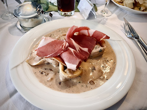 Das Essen: War absolut überdurchschnittlich! Sehr italienisch, aber mit individuellen Ideen! Selbstgemachte Nudeln, tolle Soßen, vielseitige Auswahl. Ich hab bisher noch nie Essen für eine Rezension fotografiert und hier muss es einfach sein. Tortelloni mit Spinat-Ricotta und Parma-Schinken. Wahnsinn.