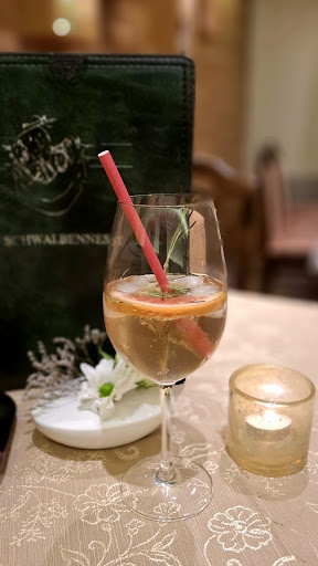 Read moreIch war bereits zum zweiten Mal dort Essen und bin nach wie vor von der Qualität und Auswahl an Speisen begeistert. Das erste Gericht welches ich probiert habe, waren Spaghetti mit Meeresalgen, Garnelen und Parmesan. Die servierten Portionen sind sehr üppig. Die Spaghetti waren aldente und die Meeresalgen knackig passend dazu. Es befanden sich darauf genau 5 gebratene Garnelen welche sehr köstlich waren, ob jedoch das den Preis von 16,90 Euro rechtfertigt sollte jedem selbst überlassen sein, ich persönlich hätte mir mehr Garnelen gewünscht angesichts der gefühlten 500g Nudeln ;) Beim zweiten Besuch entschied ich mich für die Vorspeise "Suppentrio", welches drei verschiedene Süppchen in kleinen Gläschen zum probieren beinhaltete. Diese waren ausgezeichnet lecker. Als Hauptgang wählte ich die gebackene halbe Honig-Ente "barbecaue Art" mit Country Potatoes. Die Potatoes waren wirklich sehr gut, schön knusprig und gewürzt. Die Ente war recht "trocken" und von der barbecaue Art war kaum etwas zu schmecken, dazu wäre hier eine separate Soße sehr angemessen gewesen da auch die Potatoes nicht wirklich Feuchtigkeitsspendend waren, empfehlenswert wäre hier ein großes Bier dazu zunehmen ;) alles in allem ist es eine sehr schöne, sympathische und gemütliche Gaststätte mit dem gewissen Etwas. Ich freue mich über weitere Besuche im Schwalbennest, da besonders im Sommer, draußen die Sitzmöglichkeiten in angenehmer Atmosphäre entspannend sind und ideal zum Abend...