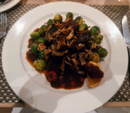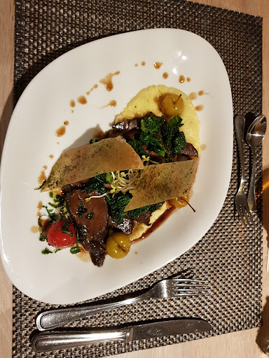 Sehr schöne geschmackvolle Location. Sehr freundliches Team. Nur für mich als Vegetarierin gab es nicht so eine große Auswahl. Die drei Hauptgerichte waren .alle mit Fleisch oder Fisch. Habe also von den köstlichen Beilagen gegessen.Ich finde, dass man in der heutigen Zeit, in der so viele Menschen kein Fleisch mehr essen einfach mehr auf dieses Thema eingehen sollte. Und dann war auch noch das Tiramisu so schnell weg und wurde nicht...