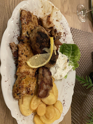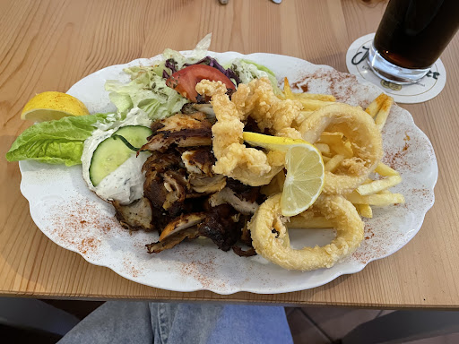Read moreEssen war nicht mein Geschmack,obwohl ich sehr gerne griechisch esse und schon öfters in Griechenland war. Der Tomatenreis war langweilig und wässrig- verkocht,das Salatdressing langweilig,kein Krautsalat,überwiegend geschmacksneutraler Eisbergsalat. Das Gyros war lauwarm,ungewürzt,absolut nicht lecker,ich habe es nicht aufgegessen,das Souvlaki bestand aus winzigen,trockenen Fleischstückchen auch ungewürzt,die Calamari Panade hatte einen ungewöhnlich,leicht buttrigen Geschmack. Ich fand es nicht lecker und würde nie mehr dort etwas essen. Jeder mittelmäßige Koch kann besser kochen als das was dort serviert wird. Auch gab es keine frischen Zwiebelringe auf dem Teller,einzig und allein das Tzaziki war gut und...