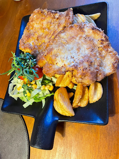Read moreOk. Wir haben unseren Urlaub ganz normal gebucht und mein Mann hat auch noch darauf hingewiesen, dass ich nicht so gut Treppen steigen kann und wir auch etwas älter schon sind. Ja,dass wären nicht so viel Stufen und nur 1 Etage höher. Ein schönes gemütliches Zimmer sollte es sein. Wir kommen also an und fahren auf den Parkplatz direkt davor. Wir gehen ins Lokal und suchen die Rezeption. Voll toll. Neben der Bar, ein fast zu übersehendes Fensterchen, dass war die Rezeption . Man öffnete dies und ich kam mir wie im russischen Märchen vor. Ich war echt bedient. Und dann ertreisteten wir uns noch wegen Abendessen zu fragen. Da fragt der uns ,ob wir reserviert haben. Leute, mein Puls ging knapp am Limit vorbei. Unser Auto sollten wir sonst wo hin stellen damit Lokalbesucher Platz haben. Das fiel schon mal aus, weil wir extra einen Aufpreis für den Parkplatz gebucht haben. Dann mussten wir die Treppe hoch (Hühnerleiter ist bequemer). Ich war so pappesatt. Der Mensch von dort öffnete die Tür, wir gingen rein. Da wussten wir warum es zur Schaabe hieß. Leute, ich dachte,ich Fall vom Glauben ab. Mein Mann fragte, ob es doch noch was besseres gäbe, aber nein. Wir wollten auch mehr bezahlen aber nein. Dann gingen wir runter um etwas zu essen. Wir wurden draußen am Eingang platziert und bestellten. Ich ein Schnitzel,aber mein Guter hatte etwas anderes. Er wusste aber, dass ich Berge auf dem Teller hasse. Mein Essen kam und ich war satt. So eine extreme Verschwendung hab ich noch nicht gesehen. Man hätte zwei Essen daraus machen können. Naja,dass ist denen ihr Geld. Wir haben dann etwas außerhalb schöne Hotels gefunden und haben sehr angenehm gespeist und tolle Menschen kennengelernt. Also es geht auch anders. Habt trotzdem viel Spaß am Reisen und genießt jede Stunde die Ihr frei habt. Schönen Abend und träumt von einem anderen Urlaub....