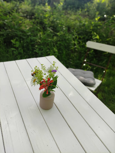 Während ich diese Rezension schreibe, habe ich Tränen in den Augen und Gänsehaut. Der Hof ist ein Ort voller Ruhe und Gemütlichkeit und Heimeligkeit...es herrscht eine Idylle durch die Bäume (viel Schatten), die Details und die Gastfreundschaft. Man kann wunderbar draußen seine frisch erworbenen Leckereien genießen. Eigentlich dürfte man keine Rezension schreiben, damit der Hof nicht überlaufen wird...Wir waren letzte Woche da und werden kommende Woche nochmals hinfahren, um uns für daheim einzudecken. Es gibt solch leckere Backwaren. Mein Rhabarber-Pudding-Kuchen war noch warm und knusprig und weich und lecker. Ich hab noch nie so großartigen Kuchen gegessen. Ich wollte ihn mir für nachmittags aufsparen. Als ich ihn allerdings dann in Händen hielt, musste ich ihn an Ort und Stelle verspeisen und träume noch heute davon. Der Kräutertee wird ganz frisch zubereitet...ich höre jetzt an der Stelle auf...wer neugierig wurde, schaut einfach selbst vorbei und findet allerlei Schätze...P.S.: Nicht unerwähnt lassen wollte ich auch die Spielmöglichkeiten für Kinder. Wir haben unseren Sohn nur zum Essen zu Gesicht bekommen. Sehr kinderfreundlich hier.