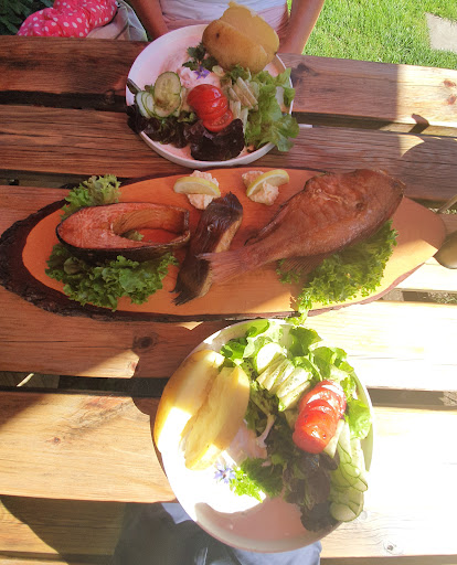 Read moreMan sitz sehr schön in einem idyllischen Hinterhof und den Räucherfisch kann man auf Stangen aufgespießt und aneinandergereiht schon vor dem Essen bewundern. Das die Leute ihr Handwerk Fisch zu räuchern verstehen merkt man sofort beim Essen, denn es ist eine top Qualität und schmeckt sehr lecker. Leider ist das mit dem Service so eine Sache und gehört nunmal zur Bewertung dazu. Die Bedienung (nicht alle) war unfreundlich, pampig und hat mir nur wiederwillig und ungenau die verschiedenen Fischsorten erklärt was prompt zu einem Missverständnis bei der Bestellung geführt hat. Zum Schluss hat sie und auch den Apfelkuchen den wir mitnehmen wollten (weil wir es nicht mehr geschafft hätten ihn gleich zu essen) nicht verkauft mit der Begründung nicht außer Haus zu verkaufen 🤔 hallo wir waren Gäste im Lokal. Am Tisch neben uns hat sich ein Gast nach dem Essen noch einen anderen Räucherfisch einpacken lassen und mitgenommen. Ist das nicht außer Haus Verkauft? Naja, man muss das wohl nicht verstehen. Ich hätte wirklich gerne 5 Sterne vergeben aber so kann ich nur der Räucherfisch und die Location bewerten und das sind dann leider nur 2 Sterne denn wir haben uns...