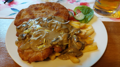 Die Schnitzel waren frisch, händisch paniert und auf den Punkt gebraten, einfach nur lecker. Frische Champignons, daraus eine bezaubernde Sauce kredenzt und wohl abgeschmeckt. Bodenständig und rustikal, einfach nur top.