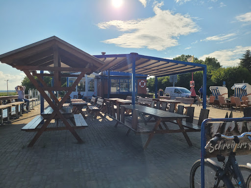 Read moreSuper frischer und leckerer Fisch. Personal ist nordisch freundlich (es kommt auch mal ein flotter spaßiger Spruch), auf Zack und der Laden ist gut durchorganisiert. Das Essen ist schnell fertig, selbst bei großem Kundenaufkommen. Die Beilagen sind klassische Hausmannskost und für einen traditionsreichen "Imbiss" auf gutem Niveau (kein Fertigessen, sondern selbst zubereitet). Der Innenbereich ist sehr klein, aber gemütlich und mit fantastischem Blick auf die Ostsee. Hunde dürfen angeleint gerne rein (gutes Benehmen vorausgesetzt :-)...) Der Außenbereich ist mit vielen Holzbänken bestückt, nicht überdacht, aber mit dem gleichen Ausblick auf das Wasser. Essen kann, trotz gegenteiligem Aufstellschild mitgenommen werden. Parkmöglichkeiten gibt es genug. Da der Laden jedoch hoch frequentiert ist, kann es zeitweise trotzdem knapp werden auf dem Parkplatz. Davon sollte man sich aber nicht abschrecken lassen.