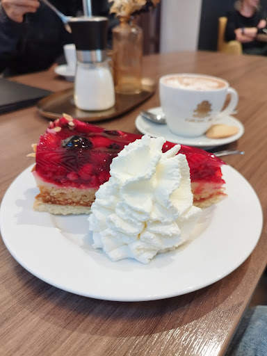 Ich hatte mich an einen größeren Tisch ans Fenster hingesetzt, die Bedienung fand das nicht gut und wollte, dass ich mich woanders hinsetze, das Geschäft war nicht voll, aber alle anderen Plätze am Fenster waren besetzt. Ich bin sitzen geblieben. Ich hatte mir dann die Speisekarte angesehen und in der Auswahl stand u.a. 2 Brötchen mit 4 Scheiben Käse und Butter für 6 €. Ich fand den Preis okay, nur waren mir 2 Brötchen zuviel. Ich hatte die Bedienung gefragt, ob sie mir auch 2 Halbe Brötchen mit Käse schmieren würden. Sie sagte, dass sie es machen. Ich habe mir dazu ein Latte Macchiato für 4,95 € bestellt, fand das allerdings recht teuer. Mein Latte Macchiato ist gekommen und eine ganze Weile später meine 2 Hälften Brötchen mit Käse auf 2 Tellern! Ich hatte die Bedienung ganz verwundert angesehen und gesagt, dass ich alleine hier bin! Mir war das sehr unangenehm, da auch viele geguckt hatten. Sie sagte nur macht nichts und stellte mir beide Teller hin. Als ich nach der Rechnung fragte, sagte sie: "Es macht 12,05 €" ich war sehr überrascht, da die beiden Hälften dann 7,10 € gekostet haben, 1,10 € mehr als das Frühsmit 2 Brötchen!!! Es gab natürlich kein Trinkgeld und die Dubei Schokolade habe ich mir dann auch nicht mehr gegönnt, da ich das Frühstück einfach zu teuer fand und die Bedienung an ihren Service arbeiten sollte!