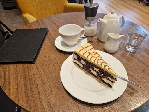 Ich hatte mich an einen größeren Tisch ans Fenster hingesetzt, die Bedienung fand das nicht gut und wollte, dass ich mich woanders hinsetze, das Geschäft war nicht voll, aber alle anderen Plätze am Fenster waren besetzt. Ich bin sitzen geblieben. Ich hatte mir dann die Speisekarte angesehen und in der Auswahl stand u.a. 2 Brötchen mit 4 Scheiben Käse und Butter für 6 €. Ich fand den Preis okay, nur waren mir 2 Brötchen zuviel. Ich hatte die Bedienung gefragt, ob sie mir auch 2 Halbe Brötchen mit Käse schmieren würden. Sie sagte, dass sie es machen. Ich habe mir dazu ein Latte Macchiato für 4,95 € bestellt, fand das allerdings recht teuer. Mein Latte Macchiato ist gekommen und eine ganze Weile später meine 2 Hälften Brötchen mit Käse auf 2 Tellern! Ich hatte die Bedienung ganz verwundert angesehen und gesagt, dass ich alleine hier bin! Mir war das sehr unangenehm, da auch viele geguckt hatten. Sie sagte nur macht nichts und stellte mir beide Teller hin. Als ich nach der Rechnung fragte, sagte sie: "Es macht 12,05 €" ich war sehr überrascht, da die beiden Hälften dann 7,10 € gekostet haben, 1,10 € mehr als das Frühsmit 2 Brötchen!!! Es gab natürlich kein Trinkgeld und die Dubei Schokolade habe ich mir dann auch nicht mehr gegönnt, da ich das Frühstück einfach zu teuer fand und die Bedienung an ihren Service arbeiten sollte!