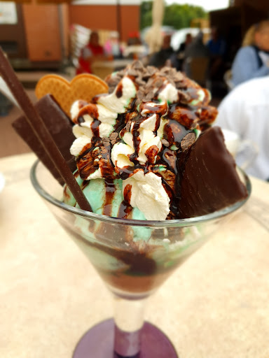 Es war bei der Ankunft am Sonntag Nachmittag bei gutem Wetter recht voll. Nachdem wir uns an Tisch gesetzt haben konnten wir bequem uns die Eisspeisen aussuchen. Es gibt zur Info viele Sitzmöglichkeiten draußen und einige innen und Eis to Go gibt es auch. Eine Bedienung kam recht schnell und hat uns freundlich bedient und konnte die Fragen schnell und gut beantworten. Ich habe ein großes Spaghettieis bestellt und meine Freundin ein Banneneisbecher und ein Kaffe bestellt. Die Bestellung kam schneller als erwartet und hat uns sehr überrascht da es ja sehr voll war. Das Eis schmeckte Lecker und gut auch von meiner Freundin und war auch wirklich groß was man unter groß versteht 😁 Zahlen ging auch einfach und schnell. Die Preise waren angemessen und Fair. Leider war zu den Zeitpunkt nur Bargeldzahlung möglich dieses soll sich aber ändern in Zukunft.