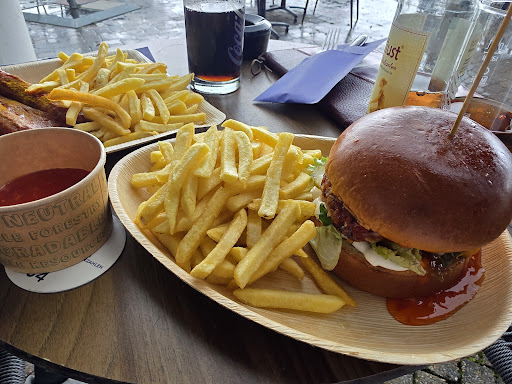 Read moreWir sind spontan dort zum Essen geblieben weil wir nebenan bei den Robben waren. Wir hatten die Currywurst und in Chickenburger mit Pommes. Das Essen war okay wie man es auch in einem Spaßbad oder Freibad erwartet nichts besonderes. Preis-Leistung ist daher auch okay. Wann sitzt etwas zurückgesetzt von der Straße und hat großzügig Platz und bei Regen ist man geschützt wenn man einer der Tisch direkt an der Wand hat. Die Bedienungen waren etwas verpeilt und wir mussten dreimal Nachfragen bis mir bestellen konnten. Aber alle die an unseren Tisch gekommen sind waren sehr freundlich. Auf dem Tisch ist ein Barcode mit welchem man bestellen und bezahlen kann hat bei uns aber nicht richtig funktioniert aber das kann auch an uns gelegen haben. Im Innenraum war es sehr stickig und sehr laut dass sehr viel Familien mit Kinder da waren. Das liegt natürlich daran dass nebenan sehr viel angeboten wird für Kinder wann muss also damit rechnen rechne. mal kurz was zu trinken würde ich wieder hingehen aber nicht mehr zum Essen. Genau gegenüber gibt es ein sehr großen Parkplatz da findet man immer einen. Der Zugang ist barrierefrei und Hunde...