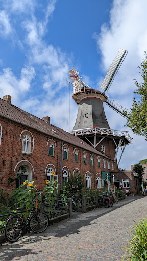 Read moreWir kamen auf Empfehlung einer Angestellten des nahe gelegenen Teemuseums. Ein gemütliches und rustikales Café mit Teestube, historisches Gebäude mit Mühlenmuseum. Bedienung freundlich, Kuchen lecker, Tee OK aber nicht in der Art serviert, wie es die Ostfriesen wirklich machen sollten. Das hatten wir im Museum gelernt. 😁 Wir hatten andere Teestuben besucht, dort haben wir zB. keine Teebeutel in der Kanne mitgeliefert bekommen. Die offensichtlich als Aushilfe eingestellte junge Frau wusste nicht, wie lange der Tee ziehen musste... Die Chefin wurde gefragt. In der kleinen, neben gelegenen Diele der Mühle kann man noch regionale Produkte kaufen. Die Mühle ist kostenfrei zu besichtigen und ist liebevoll zur Ausstellung vorbereitet. Preis Leistung insgesamt OK, beim traditionellen Tee geht noch was.... trotzdem 5 Sterne. Kinder können gut mitgenommen werden, Rollstuhlfahrer mit fremder Hilfe möglich, parken mit dem PKW vor der Tür möglich, aber begrenzt....