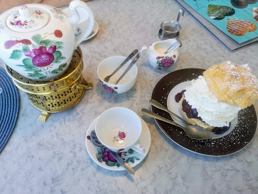 die Waffeln mit Vanilleeis waren sehr lecker... die Aussicht war auch schön... Aber die Toilette. Erstmal war nur eine Toilette für Männer und eine für Frauen. Die für Frauen war im Keller, womit ich kein Problem habe. Aber mit der Geräumigkeit - wenn man überhaupt von Geräumigkeit sprechen kann - war so eng, dass man hätte rückwärts rein gehen müssen. Ich kam einfach nicht durch die Tür, nicht mal quer passte ich durch, da bin ich stecken geblieben. Ich schätze mal die Tür und auch die Toilette war etwa halb so breit wie eine normale Tür, wenn überhaupt. Das finde ich schon frech, wenn nicht sogar diskriminierend - der gGang auf die Toilette ist ein menschliches Bedürfnis und das muss allen Menschen nicht nur schlanken und Menschen im Rollstuhl - sorry sondern auch Menschen die kräftig gebaut sind - ermöglicht werden. Ich bin als dicke Frau so einiges gewohnt, aber dass ich nicht aufs Klo gehen kann, weil es zu eng - das schlägt dem Fass den Boden aus. So etwas ist mir noch nie passiert.