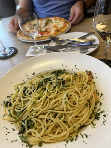 Meine Bruscetta war trocken und die Tomaten schmeckten fischig. Unsere Pizzen waren fast noch roh vom Teig her und völlig geschmacklos, die meines Freundes war zumal "wässrig" durch den gekochten Schinken oder die rohen Zwiebeln, keine Ahnung. Für unsere Begriffe ist eine Pizza knusprig von außen und luftig-bissfest von innen, der Käse sollte sich ziehen. Wir haben reklamiert und haben problemlos jeder eine Neue bekommen die etwas besser war. Irgendwie fehlt der richtige Pfiff. Haben es dann dabei belassen. Für unseren letzten Abend hatten wir es uns gemütlich und auch etwas romantisch vorgestellt, die besuchten Lokale inklusive diesem hier können das leider nicht...