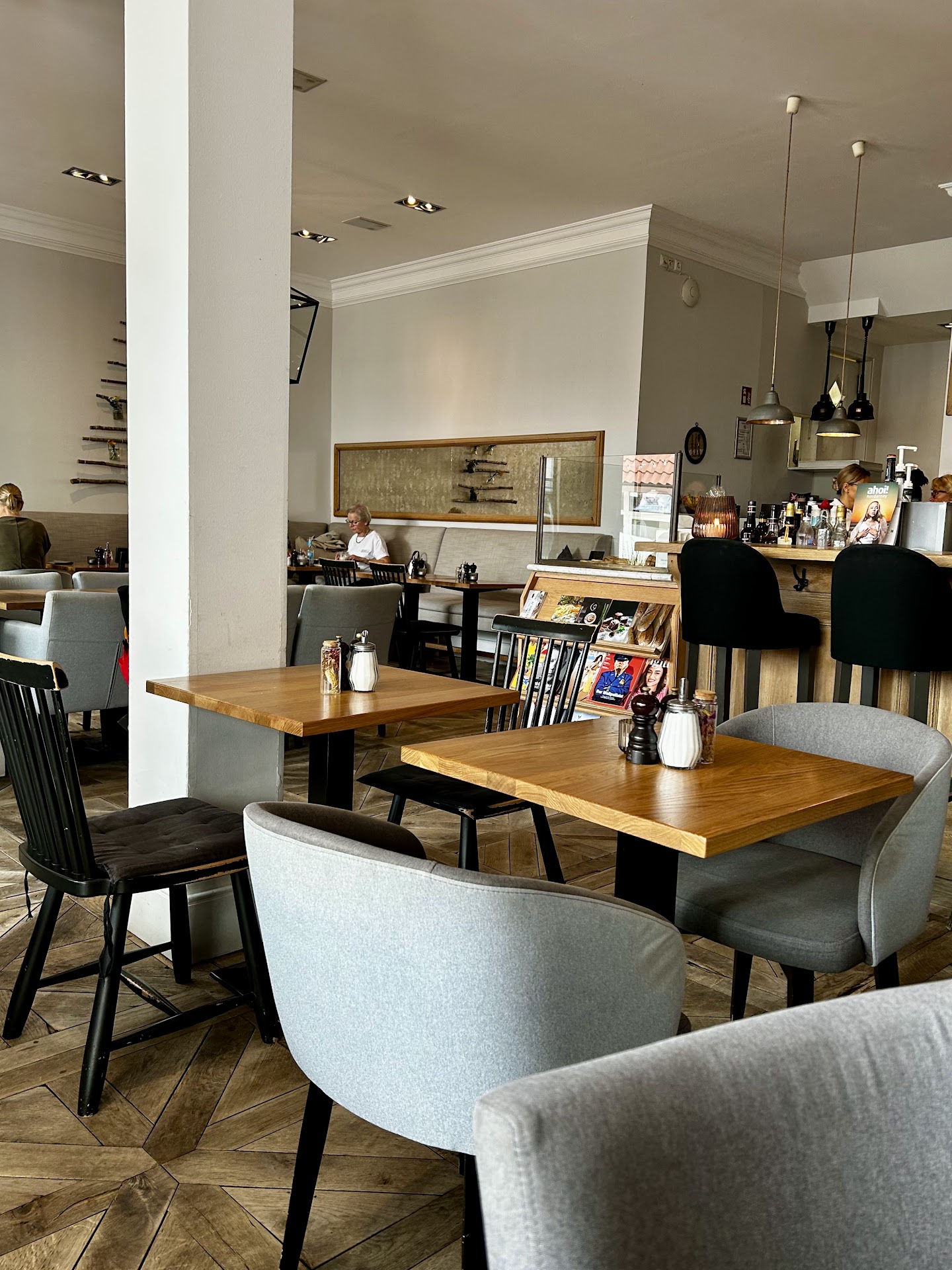 Read moreIn love with this place. The café looks very modern and stylish. Food is super delicious!! Even though the prices are a bit high but all tasted wonderful. We had steak, Wiener schnitzel, Salmon tagliatelle, chocolate cake and Schokoladen Soufflé. The soufflé is mind blowing and we keep come back for more. Great coffee as well. Highly...