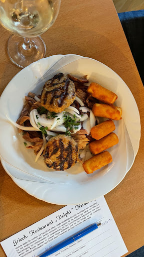 Wir waren schon erstaunt, wie gefragt das sehr kleine Restaurant mit mittelmäßiger Küche ist. Wer hier gute griechische Kochkunst erwartet, wird enttäuscht sein. Die Kellnerin brachte beide Gerichte mit der falschen Beilage. Diese wurde dann zwar nachgereicht, allerdings fast kalt schmecken Fritten dann nicht wirklich. Der Reis als Beilage ist eher mit dem Djuvec Reis beim Jugoslawen zu vergleichen & wird so in guten griechischen Restaurants, selbst in Griechenland, nicht serviert. Die Bohnen als Beilagen waren mit der gleichen Sosse wie der Reis angerichtet. Kein Unterschied in der Zubereitung also. Auch das gibt es in der vielfältig ausgerichteten griechischen Küche so eher nicht. Der Bauernsalat war lieblos angerichtet & die Zutaten definitiv nicht frisch geschnitten gewesen. Tomaten & Gurken waren weich & hatten keine frischen Schnittränder. Wurden somit also vor längerer Zeit bereits vorbereitet. Frische, knackige Zubereitung geht da anders....Schade... Vielleicht sind die anderen Restaurants in diesem Stil auf der Insel anders/besser. Wir werden auf jeden Fall ins Delphi nicht nochmal gehen. Da gibt es auf Norderney definitiv...
