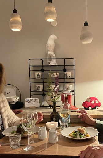 Zu Gast bei Freunden ist das Motto des Restaurants - willkommen im Chaos wurde es dann. - Norderney ist für uns inzwischen ein bisschen wie ein Wohnzimmer - wir fahren zu 6 und haben das Ziel - Einfach nur ein schönes Wochenende zu verbringen. Die Jahre zuvor sind wir immer im Seesteg am Samstag essen gewesen und dachten uns - wir probieren etwas neues und gehen in die kleine Schwester der Unternehmensgruppe - ins Esszimmer. Wir hatten die späte Besetzung gewählt, da wir gerne länger sitzen und noch die eine oder andere Flasche Wein trinken. Nun was jetzt folgt könnte auch aus einer folge von „Verstehen Sie Spaß“ stammen und hat mit der anvisierten Spitzenposition des Restaurants rein gar nichts mehr zu tun. Die Karte ist bewusst (nehme ich an) sehr klein gehalten um auf höchstem Niveau eine perfekte Qualität zu bieten. Soweit so gut. Es gab zusätzlich eine kleine Karte die noch zwei Gerichte bereithielt - Seeteufelbäckchen mit Garnelen und Kalbsfrikadelle…….also Bestellung aufgegeben. Eine Flasche Cremant Rose Nicht so viel Hunger - deswegen je eine der Vorspeisen mit sechs Tellern zum teilen und dann 1 x die Seeteufelbäckchen, 1 x Kalbsfrikadelle, 2 x das Kalbssteak und 2 x den Kabeljau ich mit der passenden Weinbegleitung ………..kurze Rückmeldung des Service, einer sehr netten jungen Dame die für das was jetzt folgt nicht das Geringste kann, denn das hat die Restaurantleitung und die Küche mit Unprofessionalität, Arroganz und Missmanagement, selbst verbockt, die Seeteufelbäckchen wären leider aus - von daher umbestellend auf nun 3 x Kalbssteak. Der Cremant wurde ausgeschenkt und dann wurden wir wieder vom Service aufgesucht der und selbst etwas pikiert erklären musste das es leider auch kein Kalbsteak mehr gebe und 3 von 6 Leuten such ein neues Gericht aus den nicht gerade umfangreichen Karte aussuchen mögen - Kalbsfrikadellen wären noch da, wurde uns mitgeteilt. Es kann sein das wir schon etwas ungläubig geschaut haben und unseren Missmut zum Ausdruck brachten und bei einigen der reflex das Lokal jetzt zu verlassen um woanders unser Glück zu versuchen einsetzte, letztlich dann aber, wegen zumindest der eingangs erwähnten jungen Dame dann eine alternative in Form von Duroc Schweinefilet für die drei gescheiterten Kalbsteak, angeboten und auch von allen genommen wurde. Es kam Brot und Butter für Vorweg dann wurde der Platz vor uns wurde geräumt für die Vorspeisen - jetzt aber von jemanden anderen gebracht, die offensichtlich wegen einer fehlenden Kommunikation vom Plan die drei Vorspeisen mittig zu platzieren und mit sechs Tellern zu versehen nicht mitbekommen hatte und so erneut instruiert werden musste. Der Wein wurde eingeschenkt und dann trat eben besagter Supergau auf - die neue Bedienung trat an unseren Tisch und teilte den Kabeljau Essern mit das es nicht mehr genug Kabeljau gebe und man Schollenfilet und Kabeljau mischen würde um zwei Essen daraus zu generieren. Also…….ich sag mal so …..6 Hauptgerichte, nur ein paar Tische - mit Reservierung also eine absehbare Menge an Gerichten. Das ließ auch unseren friedlichsten Mitstreiter die Hutschnur platzen der daraufhin sein Essen komplett stornierte - das führte zu einem sehr unprofessionellem verhalten der Servicekraft die wütend in die offene Küche lief und das Ergebnis dem Koch lautstark übermittelte - und dem wir im Verlauf des Essens mit einem „Räubertellern“ zumindest zum mitessen überreden konnten. Gut damit ist die Gesamtsituation erst einmal umrissen. Da die Vorspeisen recht ansehnlich waren will ich nur kurz auf die Hauptgänge eingehen. Die Kalbsfrikadelle war trocken und glich eher einem Personalessen. Der Kabeljau zu lange gegart und deswegen faserig - lieblos wie in den 90 gern im 3 er Verbund angerichtet. Da zwei Bestandteile eher flüssig waren kann sich das jeder vorstellen. Duroc war gut. Da es mein Bericht ist also nur die Bewertung für mein Essen und die „Event Gastronomie“ Dessert gabs keins mehr aber eine Entschuldigung vom Restaurantleiter der einen Erklärungsversuch mit „auslaufenden Karte“ startete - war us aber...