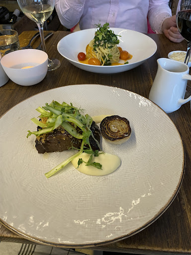 Der Rindernacken 48/65 war hervorragend. Die Sauce dicht, samtig uns sehr lecker. Püree ganz fein und durch das Sieb gestrichen. Hier merkt man, dass der Koch in einem Sterne-Restaurant gelernt hat. Die Tagliarini mit Tomaten, Spinat und Parmesan waren sehr gut. Am Abend davor waren wir notgedrungen im Al Dente und ich habe für ein Rumpsteak mit Kartoffeln und Salat ohne Dressing 1€ mehr bezahlt, als für den Rindernacken. Da beißt man in die Tischkante.