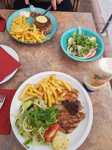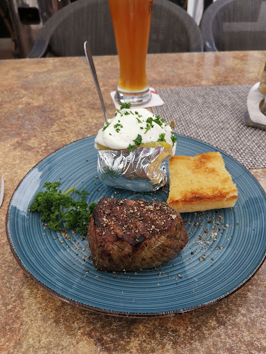 Nachdem ich eigendlich immer gutes von diesem Steakhaus gehört habe waren wir nun auch einmal dort und ich denke leider, das es das letzte Mal gewesen sein wird. Meine Gemüse Fleisch Pfanne war ein Reinfall. Das Rind und Putenfleisch war tot gebraten und das Gemüse (handelte sich wohl um Suppengrün) wurde wohl am Ende nur kurz zum warm machen dazu getan und war praktisch noch im Rohzustand. Gwürz war nicht vorhanden, aber zum Glück standen Salz und Pfeffer auf dem Tisch 🙄. Das beigelegt Knoblauchbrot war ziemlich klein und hatte seine beste Zeit hinter sich. Am Ende drauf angesprochen reagierte man leicht genervt und von einer Entschuldigung keine Spur. Bei den Hacksteaks meiner Begleitung handelte es sich um ein fertig Tiefkühl Burger Paddy für 1,50€ was nur von einer Ofenkartoffel und einem Fitzel Knoblauchbrot begleitet, trocken und lieblos auf dem Teller lag. Das machte schon einen etwas armseligen Eindruck da auch weder Beilage noch eine Soße dabei war. Auf Nachfrage wurde eine Ketchup und Mayo Plastik Flasche gereicht. Mit dem Hinweis, das man auch Steakhaus Soße hätte😊, die aber am Ende mit auf der Rechnung stand.😳 Bei einem Hacksteak wurden Bratkartoffeln statt Ofenkartoffen gewünscht wo dann ja auch die Ofenkartoffel weg gelassen wurde aber die Bratkartoffeln dafür trotzdem extra berechnet wurden. Das Schnitzel (wahrscheinlich auch Tiefkühl Fertigware) war wohl ganz gut. Für mich war es das schlechtes Essen...