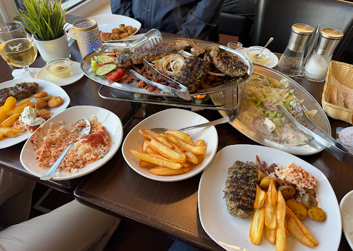 Das Betreiber-Ehepaar empfing uns herzlich, man fühlt sich direkt willkommen und wie bei Freunden zu Gast. Wir entschieden uns für die Platte für drei Personen, die mit verschiedenen Fleischsorten und reichlich Beilagen (Pommes, Kartoffeln, Reis) wirklich großzügig bestückt war. Vorweg gab es eine große Salatplatte mit Schafskäse – frisch, knackig, lecker.