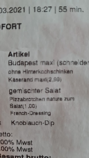 Ps.: Zu Ihrer Antwort: Es war eine Pizza Budapest und eine Pizza Memphis in mittlerer Größe.Bilder schlecht,da bereits gestern nach Abholung gegessen.Es ist lediglich unsere Meinung.Kaum noch Belag.Wir fanden es für das Geld "arm".Das war "früher" bedeutend besser.Nicht böse oder persönlich gemeint,aber da werden wir uns in Zukunft anderswo "bedienen".Waren mega...