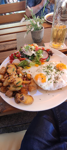 Read moreDa haben wir wohl einen schlechten Tag erwischt? Gegen 20,45 erstmals hier eingekehrt. Nette Bedienung, Biergarten geöffnet. Alles sah gut aus. Insgesamt (mit uns) nur 3 dünn besetzte Tische. Wir konnten schnell bestellen und die Getränke kamen zeitnah. Aber das war es dann auch. Nach ca 40min. brachte man uns das Besteck. Inzwischen wurde es dunkler und dunkler. Eine sporadisch angehende Lampe mit Bewegungssensor (immer ca 5 Sekunden grelles Hoflicht) erschreckte uns schon in unregelmäßigen Abständen, ansonsten saßen wir bald im nächtlichen Grau. Solarlicht etwa 4 Meter weiter half dabei wenigstens Schemenhaft die Sachen auf dem Tisch zu identifizieren. Nach über 60 min. kam dann das Essen. Meine Frau hatte Rostbrätel und mit etwas zusätzlich Pfeffer und Salz, fand sie es richtig lecker. Ich dagegen bestellte Schnitzel mit Pilzen u. Pommes. Wie es auf dem Teller aussah, konnte ich leider nur erahnen, aber es schien zumindest eine gute Portion zu sein. Leider war jedoch Quantität nicht gleich Qualität. Selten gebe ich über die hälfte meines Essens zurück. Aber hier tat ich das. Das ungewürzte Schnitzel erstickte förmlich in einer klumpigen, nach Mehl schmeckenden Panade. Die Rahmchampignon schmeckten eher süßlich nach Schlagsahne und kannten Kräuter oder Gewürze wohl nur vom Hörensagen. Kurzum, es wurde auch nach langem Warten auf das Essen und entsprechendem Appetit beim Kauen immer mehr im...