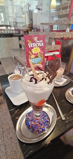 Read moreDas Eiscafe Verona bietet mit seinem Konzept des SB Eiscafés ein besonderes Highlight. Davon abgesehen, dass das dazugehörige Eiscafé im Normalen Betrieb viel zu bieten hat, vor Allem ein top Preis-Leistungsverhältnis, u.a. Eisbecher für 5,50€ und die Kugel Eis im Straßenverkauf für 1,10€, hat man mit der Selbstbedienung alle Möglichkeiten, kreativ zu werden und nach Lust und Laune Dinge auszuprobieren. Verschiedene Bechergrößen und die Waffel Variante, die sehr günstig sind, 6 Eissorten, Soßen, Sahne, viele Toppings... Die Waffel als Größe M ist mit 4€ eine absolute Empfehlung. Alle Becher sind Mehrweg und im Fall der Waffel, essbar. Ebenso gibt es Mehrweg Löffel. Alternativ zum Eis auch Slushis, Kaffee und Kakao. Für den großen Hunger zu Hause steht der Kühlschrank mit verschiedenen 1000ml Packungen für 5€ bereit. Parken ist für 0,50€-1,00€/h in direkter Umgebung möglich, oder die Anreise mit Zug oder...