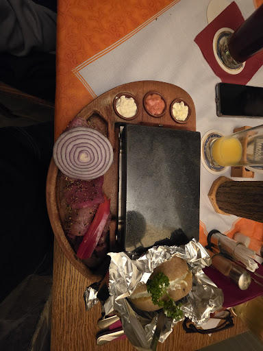 Read moreWaren relativ spontan in dieser Gaststätte. Vom Ambiente her, ist es schon ziemlich „runter“. Das Mobiliar scheint noch aus den 90-ern zu sein, was auch nicht weiter schlimm ist. Aber der Gesamteindruck ist aber dürftig. Die Gaststätte besteht aus zwei Etagen, wobei wir in der unteren Etage saßen. Es hat Kellerfeeling, die Luft stand da unten drin. Die komplette Gaststätte riecht extrem nach Knoblauch und verbranntem Essen. Was auch logisch ist, wenn dort einige auf „heißen Stein“ essen und ihr Zeugs selbst braten. Mir erschließt sich das Gesamtkonzept dieser Gastronomie nicht. Man brät dort auf einer mittelmäßigen Fläche sein Fleisch. Ich hatte Entenbrustfilet - aus dem Ganzen! Ich hatte erwartet das dies wenigstens dünn in Scheiben geschnitten ist. Ich habe es nicht geschafft dies anständig durchzubraten. Habe es dann halbroh mitgenommen. Unsere Klamotten stanken zum Himmel nach diesem Besuch. Mit uns leider kein...