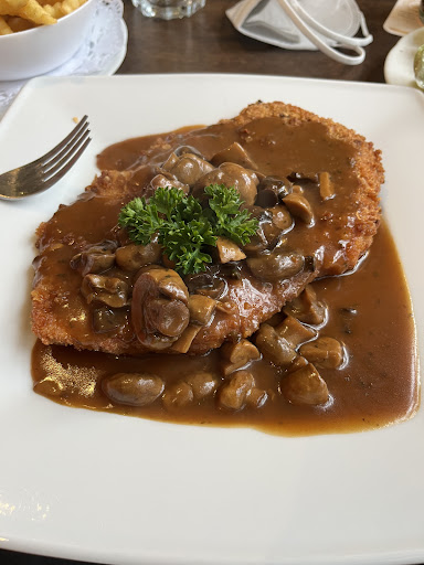 5 : Das Ergebnis wir hatten Schnitzel ( Schlemmer & Wiener ) -Pommes verbrannt -Champignons aus dem Glas ( auf Nachfrage " seien frisch ) -Salat Buffett alles aus Eimern und der frische Salat am Rand braun -Kroketten triefen vor Fett Inklusive der Zwiebeln die aus der Pfanne kamen