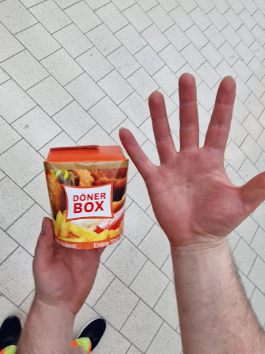 War heute mit zwei Freunden in diesem Lokal essen und wir haben einmal einen kleinen Döner, ein Dürüm und eine Dönerbox bestellt. Irgendwann ist dem Mitarbeiter aufgefallen, dass er gar kein Dürüm mehr übrig hat. Also zwei Dönerboxen und eine kleinen Döner bestellt. Der Döner war so wenig belegt, wir dachten zu erst er hat die Beilagen vergessen, nach wirklich 7 Bissen war der aufgegessen, für 6,5€!! Und die Größe der Dänerbox für 6€, naja, seht selbst. Insgesamt habe ich 10 Pommes gezählt. Ich dachte das ist ein Witz! Wo kommen wir denn mittlerweile hin für 10 Pommes und 100g Fleisch und paar Zwiebelstücke und gefühlt 50g Salat 6€ zu zahlen?! Nicht zu empfehlen. Einzig der Geschmack war...