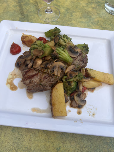 Das restliche Essen kam schließlich nach 1 Stunde und 20 Minuten – mit der Ausrede, die Antipasti-Platte sei schuld gewesen. Das Roastbeef-Steak wurde medium bestellt, kam aber komplett durchgebraten. Das Calamari-Gericht enttäuschte ebenfalls: Statt wie auf früheren Google-Rezensionen mit Kartoffeln und großer Salatportion, kam eine einzelne große Calamari mit ein paar Blättern, etwas Gurke und einer halben Tomate. Eher eine Vorspeise als ein Hauptgericht.