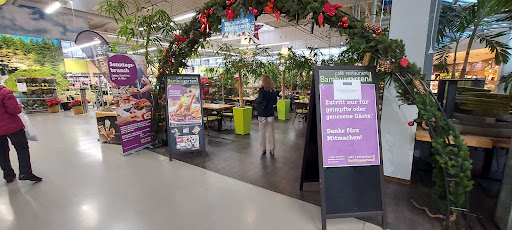 Das Ambiente ist auch sehr schön vom Gartenmarkt sieht man nicht viel und wir haben die Zeit zwischen Frühstück und Mittagessen für einen Bummel durch das Gartencenter genutzt .