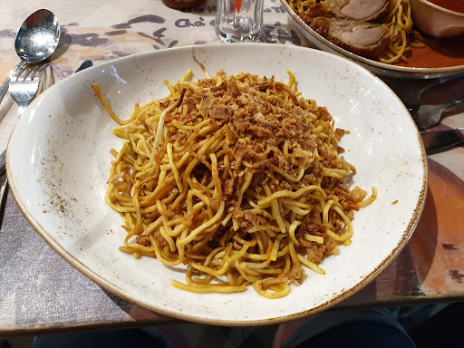 Read moreDas Ambiente ist schön. Dort ist Selbstbedienung. Mein Gericht "gebratene Nudeln mit Gemüse" war sehr günstig- 3,70€. Das Gericht wurde noch an der Bestelltheke auf den Teller getan und ich konnte ihn mit an den Tisch nehmen. Leider war sehr wenig bis kaum gemüse dabei....eine Soße gibt es zu jedem Gericht dazu. Ohne Soße kann man die Nudel- und Reis Gerichte nicht essen weil sie sonst zu trocken sind. Das andere Gericht "gebratene Nudeln mit Ente" für ca. 8€ war nicht dem Preis gerecht. Umgerechnet haben die paar Stücke Ente 5€ gekostet. Leider blieb das essen auch nicht lange warm. Insgesamt war es ganz ok. Personal...