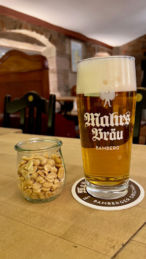 Read moreMehr als 5 Sterne zu vergeben ist leider nicht möglich! Ein absoluter Geheimtipp dieser Almosmüller. Mittlerweile komme ich regelmäßig hierher um mein Feierabendbier zu genießen. Es gibt ein Fassbier von Mahrs Bräu aus Bamberg - lieben wir! Außerdem gibt es eine gute Auswahl an Flaschenbieren (Breitenlesauer, Simon Bräu, etc.). Whisky oder Rum-Liebhaber kommen hier auch voll auf ihre Kosten. Hinter der Bar stehen nämlich sehr viele, sehr hochwertige, gute Tropfen. Für den Hunger gibt es auch etwas, was ich sehr gelungen finde: Eintöpfe - wirklich leckere hausgemachte Eintöpfe. Mit Fleisch, ohne Fleisch, sogar vegan - für jeden was dabei! Selbst wenn man nur ein Gelüst verspürt gibt es auf der Karte eine "Snack"-Portion eines Eintopfs. Neben den Eintöpfen gibt es auch noch ganz klassisch fränkische Brotzeit (Wurst-, Käseplatten). Auf regionale Zutaten, sowie Nachhaltigkeit wird hier ebenfalls geachtet. Zum Bier gibt es auch immer kleine Knabbereien dazu, wie zum Beispiel Nüsse oder Chips. Jetzt kommen wir noch zum Thema Ambiente. Unbeschreiblich. Ein Gewölbekeller im ersten Stock. Eine denkmalgeschützte alte Mühle aufwendig saniert, liebevoll dekoriert und gemütlich eingerichtet und schon hat man das was sich "Beim Almosmüller" nennt. Die Inhaberin Moni und ihr Mann Ralph sind ebenfalls total nett und sorgen mit ihrer charmanten Art für gute Laune bei den Gästen. Wenn das Wirtshaus leerer wird setzen sie sich auch mal gerne dazu und sind selbstverständlich immer gern für einen Plausch bereit! Events wie zum Beispiel ein Whiskey-Tasting gibt es hier ebenfalls. Absolut alles...