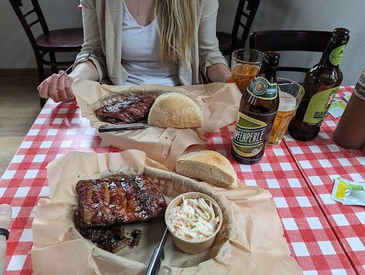 Read moreThis is a flat-out, no holds barred BBQ joint. I loved it. Like any "joint," it has simple decor and the team focuses on the taste of the food. We ordered two Pick 2 sandwiches, so we ate pastrami, brisket, pulled pork and burnt ends. The brisket was a dream: falling apart yet still moist and flavorful. The others were also superb, and the sauces were wonderful, with Area 51 being our favorite. The Caesar and potato salad were good and true to american tastes, although I wouldn't have turned down a little pickle relish in the potato salad. Cole slaw was absolutely perfect and matched well with each meat. Cole slaw belongs on the sandwich, of course, in case you were wondering. I think I choked back a few tears over the baked beans. They were smoked to perfection, the sauce was perfect. The only problem I had was I couldn't order a quart to take home with me. Closed on Sundays, so my fantasy of picking up a to-go order as I left Nuremberg was sadly zerplatzt. This is American fine...
