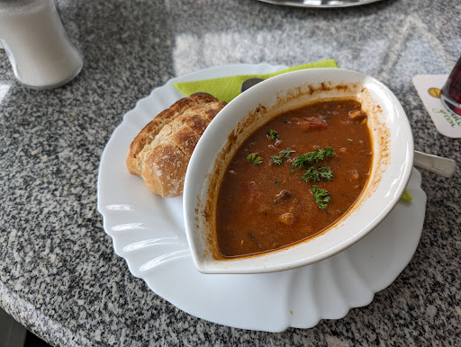 Excellent. Clean and tastefully furnished. Tasty food with big portions. Lots of choice. Beer is high quality and great value. Very friendly service. Pleasant view of the castle walls through the big picture windows.. Located in a safe, clean area on a corner where you can watch the world go by. Free books! Free wifi and powersockets. Many thanks from this Englishman who was staying in the area for business and needed somewhere...