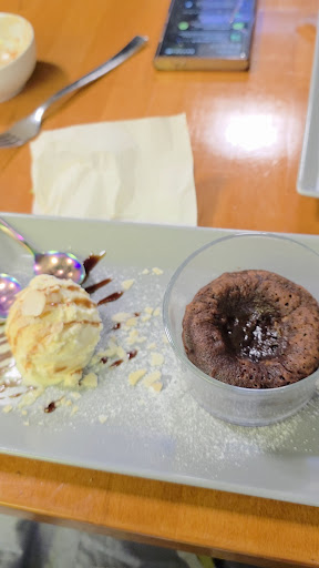 To finish off, I had the chocolate soufflé, and it was absolutely yummy—rich, warm, and the perfect sweet ending!