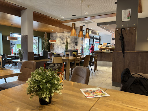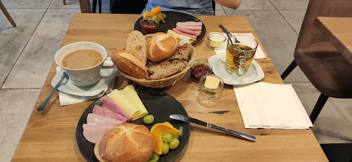 Wir waren frühstücken in dieser Filiale und hatten uns auf ein französisches Frühstück gefreut, leider waren dann die Croissants aus. Wenn man das zur Frühstückszeit anbietet sollte man das auch so lange haben-meiner Meinung nach. Dazu haben wir uns noch Spiegelei und Rührei mit Schinken bestellt, leider war am Ende der Schinken beim Spiegelei dabei…