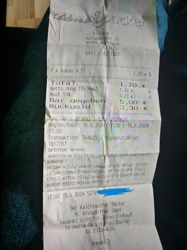 Read moreTja wie soll ich von berichten, nun wir waren dran während wir bestellen dreht sich der Mann um läuft zur Kasse ohne uns was zu sagen, steht da ein kleines blondes Mädchen die kein deutsch kann, eine minirock Mama steht auf der Treppe nach oben und bestellt in rusischem Akzent ihre zuzüglichen Wünsche, diese sofort erfüllt werden. Kamen uns richtig verarscht vor ! latscht zurück die freundlichkeit wieder vom Gesicht gewischt zu uns rüber meint "ja wars das ?" frage ich ob die Brezen Vegan sind, meint er ja wollen se ? sag ich nein ich nehme lieber dies und das, entgegnet er mir mit "Madam ich sagte Vegan" (im aggro ton, als ob die Breze mir entgegen fliegen wolle) sag ich, ich will aber grad keine Breze, fängt er an über mich zu fluchen verdreht die Augen latscht zur Kasse, meine Mutter schaut mich geschockt an, ich dachte nur was sagst du jetzt.. am besten nichts 🤔 nervt langsam diese kriecherei denn Ukrainern entgegen ! Ich hätte das per Camera aufzeichnen sollen, für die Zentrale und deren Boss. Ein deutscher Mann so 50+, hällt sich für denn Leiter, vielleicht ist er es was entsetzlich wäre. Allgemein keine Geduld bei...