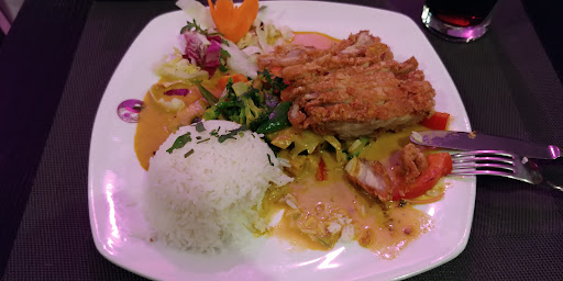 Read moreWas das Duck & Curry besonders macht ist sicher der Name - das wars dann aber auch schon. Insgesamt ist da nichts, was ein anderer Thai nicht auch bieten würde. Die Parksituation ist eher entspannt, es sind ausreichend Parkplätze ums Lokal oder in der Nähe vorhanden. Das Lokal selbst wirkt mit teils grauen Wänden nicht sonderlich gemütlich, aber das kann man als "in" gelten lassen. Man hat ausreichend Platz am Tisch und die Auswahl ist - natürlich entenlastig - gut. Das Servicepersonal ist unterbesetzt - es sind vermutlich nur die Besitzer und eine Bedienung. Dementsprechend lang wartet man auch immer bis jemand die (Nach)bestellungen aufnimmt. Man beherrscht es perfekt durchs Lokal zu laufen und dabei möglichst geringen Augenkontakt zu den Gästen aufzunehmen. Die Vorspeise (Vulkanrolle) war toll, bei den Hauptspeisen scheint es so, als würde die Standardsauce je Gericht nur gering verändert werden. Im Grunde war das bei drei verschiedenen Enten doch sehr ähnlich. Großes Minus gab es bei den Kindern, Bestellt waren Nudeln mit Fleisch - explizit ohne Gemüse und Ei und Gewürze. Was kam waren Nudeln mit viel Ei, wenig Fleisch, ner Menge Gewürzen. und - für Kinder im Alter von 8 und 9 bestens geeignet: Chili. Zwar war die Kellnerin (Chefin?) darüber dann verwundert, da sie es angeblich in der Küche ja anders gesagt, hätte - es war für sie aber leider trotzdem kein Anlass was neues zu bringen. Die Gerichte gingen quasi unangetastet wieder zurück. Zum "Ausgleich" wurde es aber voll berechnet. Das Personal ist leider wenig aufmerksam, sehr hektisch und wenig freundlich. Der Nachtisch am Nebentisch schaute schön aus - wir kamen leider nicht mehr dazu, da die Kinder nun wirklich Hunger hatten und wir noch beim Chinesen nebenan was zum Essen holen mussten. Insgesamt leider keine Empfehlung für das Duck & Curry - es gibt deutlich bessere Thais in Nürnberg. Für Kinder ungeeignet, auch das Gutscheinbuch ruft kein freudiges Gesicht bei den...