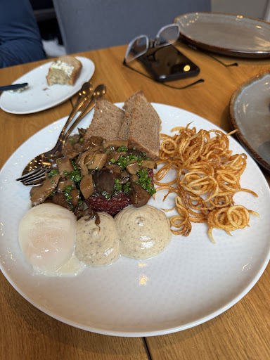 Service: The menu was not 100% clear to us and after we asked the waiter, we didn’t know any better because he only explained to us the sizes of the dishes. So we asked to get one of the smaller sized dishes as a starter and a bigger dish and a steak as a main dish. Apparently that was not what he meant when he didn’t explain the size of the dishes (apparently not very functional) and only brought us the steak and the bigger dish. After a while we asked, where is the smaller dish we wanted as a starter and he told us: „You didn’t communicate it right and it’s you‘re fault we didn’t get the order you wanted.“ We tried to be really nice and said that we apparently discomunicated but he pointed out several times that it was not his fault. He also undermined it until we left in the end which was kinda upsetting and really made us uncomfortable. Besides, he didn’t offer us any water although we ordered a bottle of wine. When we asked to get some, he again pointed out, that we should have asked for it. I’m general, the service was really really making us feel bad and like we don’t belong to this place.