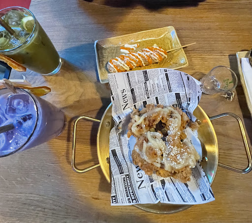 We ordered the korean fried chicken with honey butter garlic sauce. The chicken was very crispy but the sauce was alright, nothing special. We were really excited about the corndog but ultimately were let down tremendously. It wasn't crispy, mostly just dough, and very small considering the price we paid.