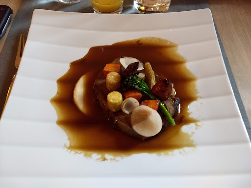 Das Essen war ok, nichts besonderes – für uns nicht Sterne-Niveau. Das Fleischgericht war alles nur mit Schwein und sehr speziell (Schwarte, durchwachsen, etc.). Auch im Gruß aus der Küche sehr speziell mit Sülze.