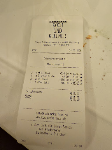 We had high expectations for Koch und Kellner, given its Michelin star, but unfortunately, the experience was a major disappointment. The 9-course menu took over 4 hours to complete — by the time the last dish arrived, we had digested the earlier ones twice over and couldn’t even enjoy it anymore.